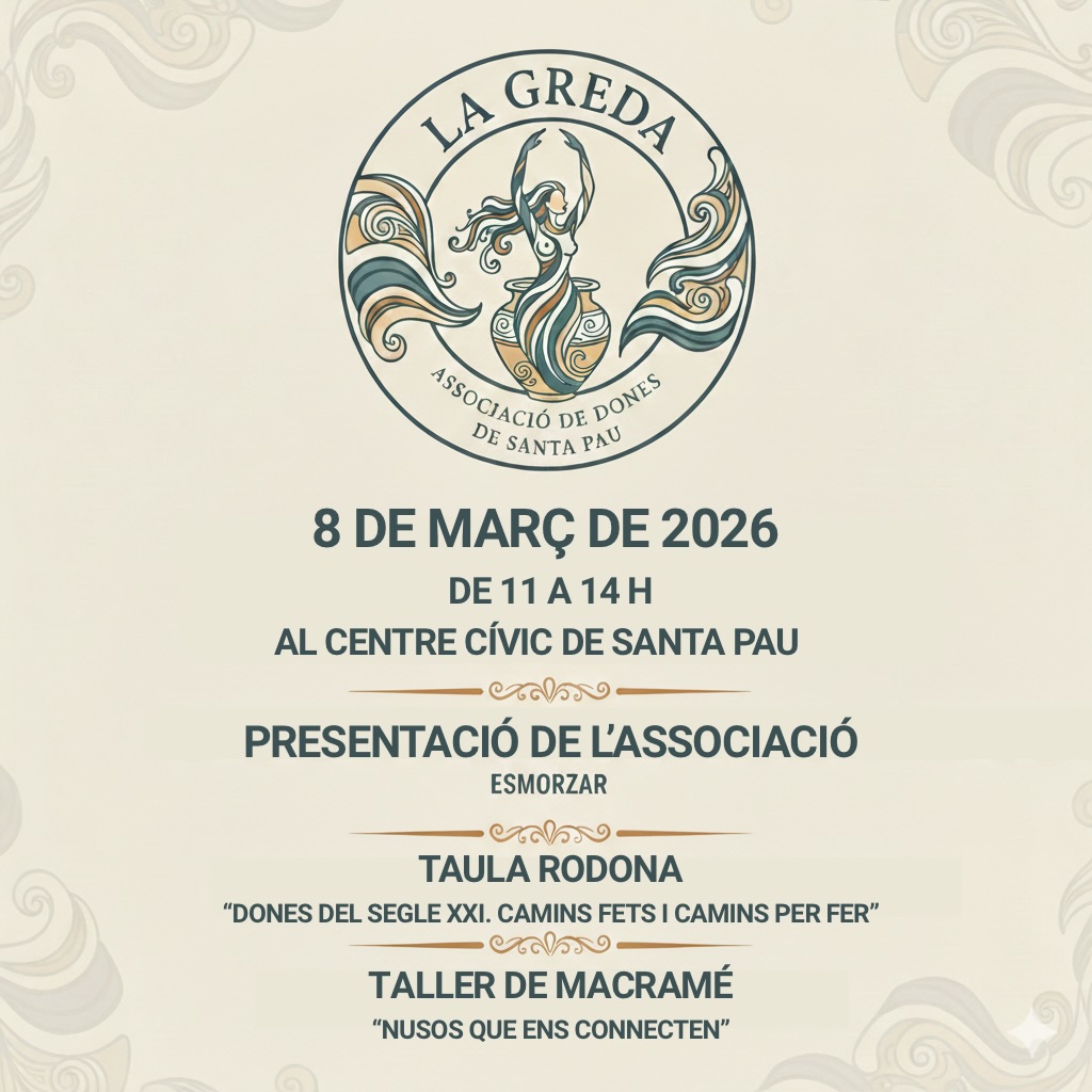 El proper 8 de març, coincidint amb el Dia Internacional de la Dona Treballadora, neix oficialment a Santa Pau la nova associació de dones “La Greda”. 📍 On: Centre Cívic…