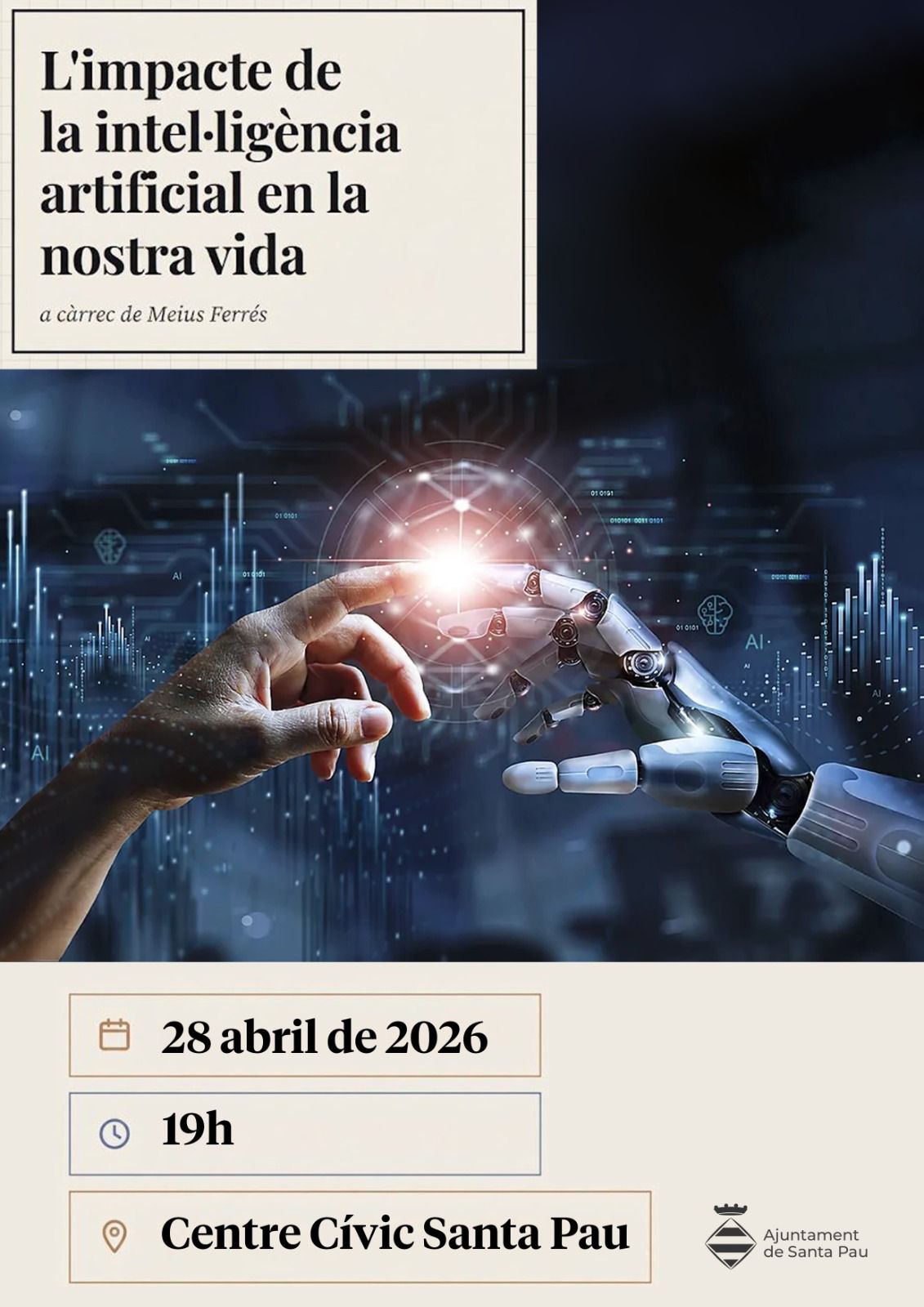 Des de l’Ajuntament de Santa Pau us convidem a una xerrada per descobrir com la intel·ligència artificial està transformant el nostre dia a dia. 📅 28 d’abril de 2026 🕖…