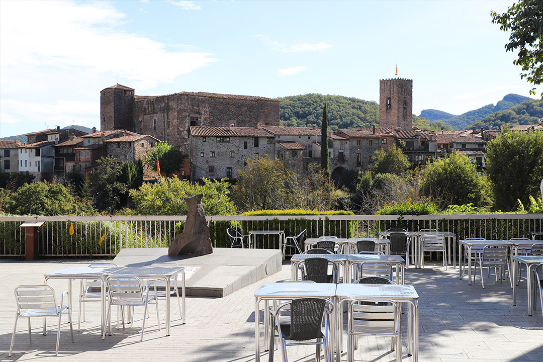 La seva terrassa és el millor mirador al nucli medieval de Santa Pau i al seu castell.
