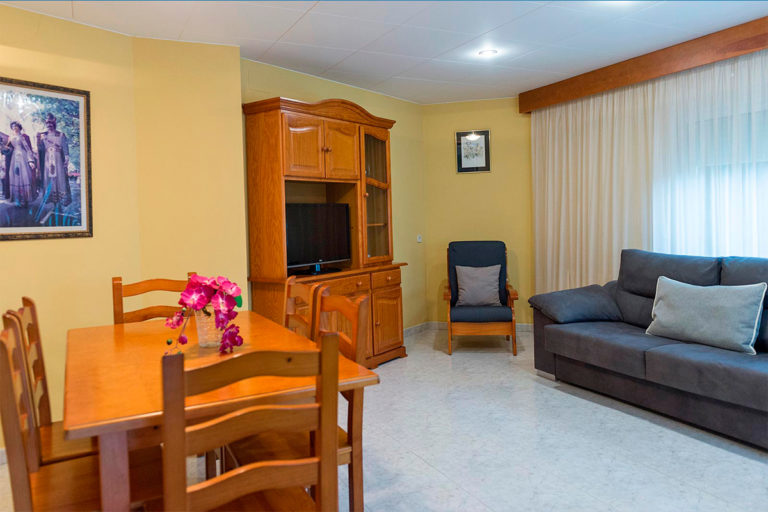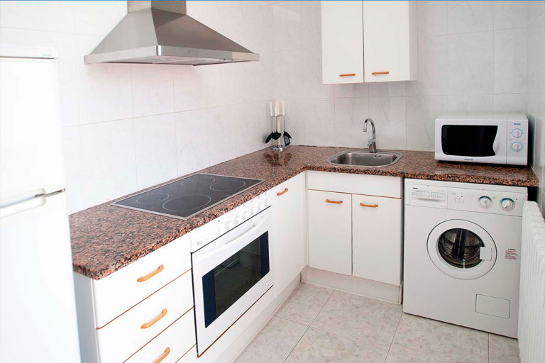 Cada apartament disposa d’una habitació de matrimoni, una habitació doble amb dos llits, una habitació amb una llitera, menjador amb sofà llit, dos banys complet i cuina.